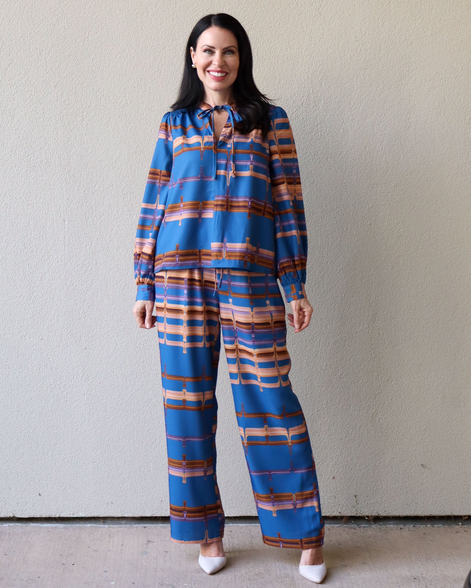 Celebrate the season in vibrant style with this Ciebon Abstract Print Blouse. Featuring a rich, colorful fall-inspired design, this blouse adds a playful pop to your wardrobe while keeping you comfy all day. Pair with matching pants or wear solo, it’s a fun, fresh way to embrace autumn’s lively spirit.