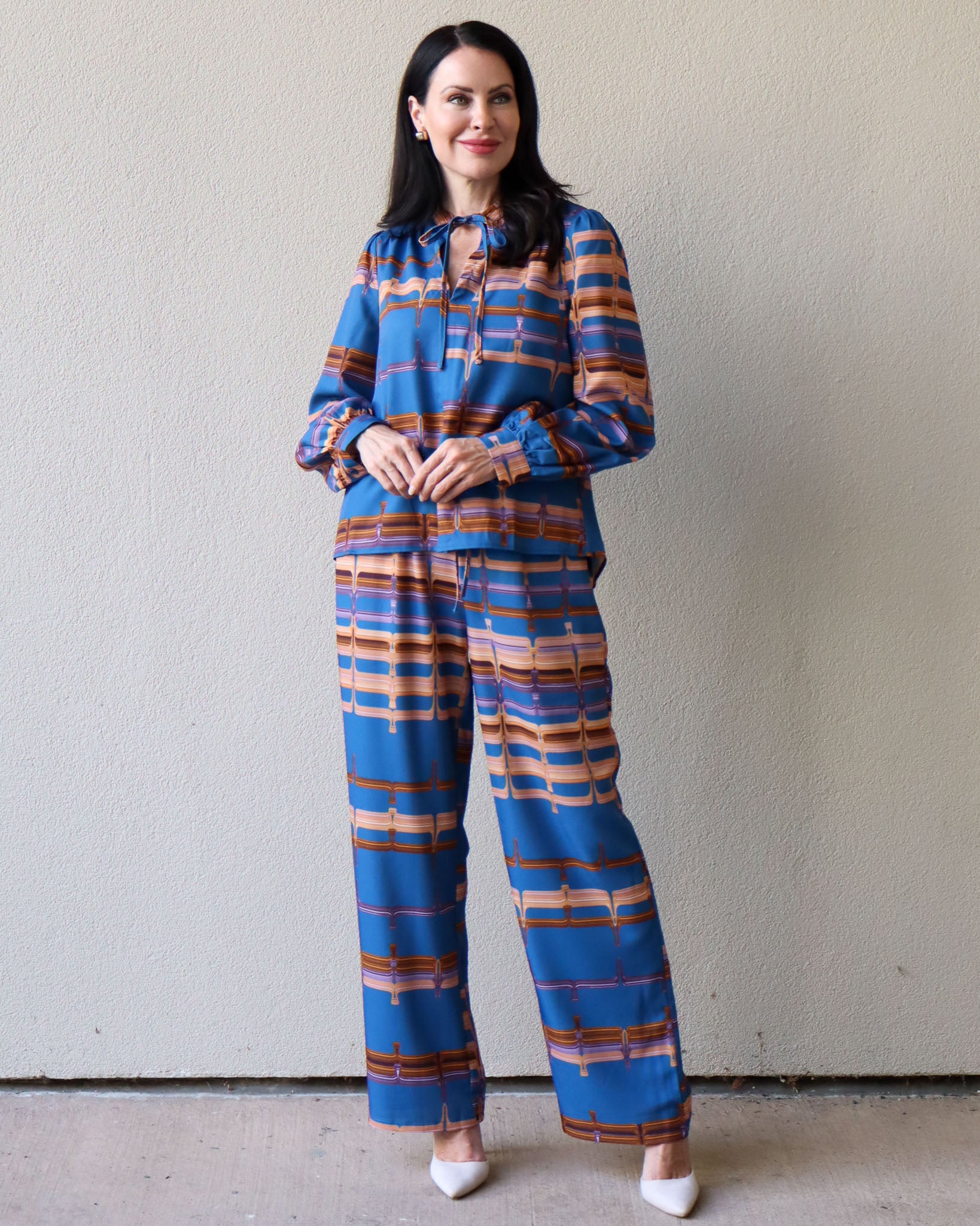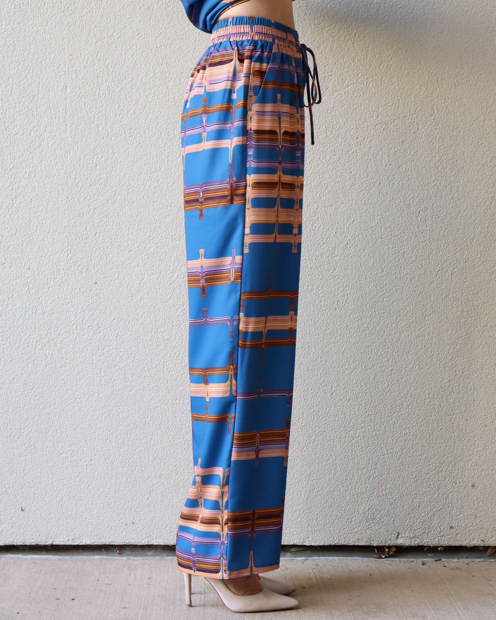 These Abstract Print Drawstring Pants bring vibrant fall colors to your wardrobe with their rich, playful design. Perfect for pairing with a simple sweater or the matching top, they offer a fun way to brighten chilly days while staying comfy and stylish. Embrace the season with a splash of color and effortless ease.