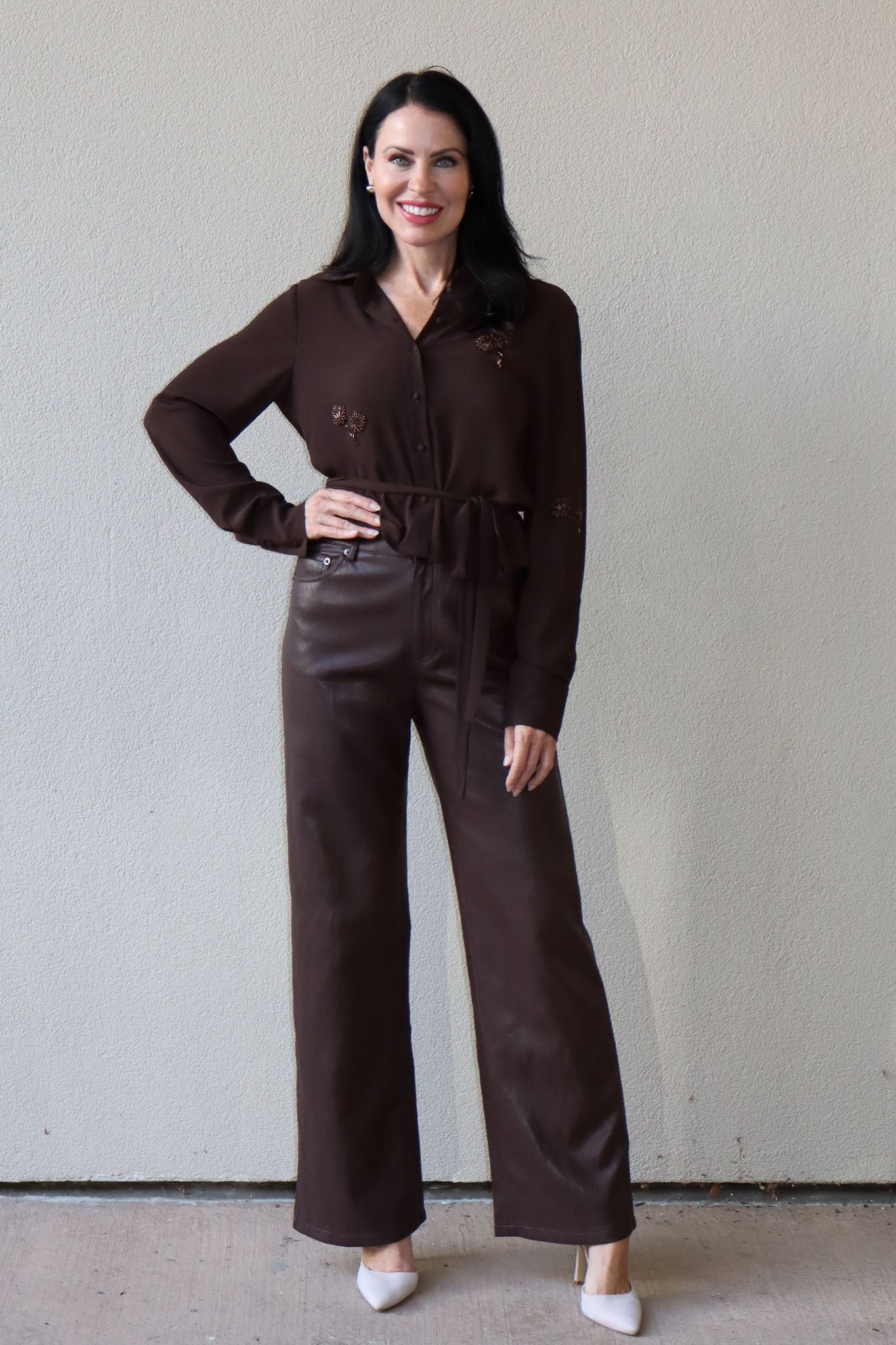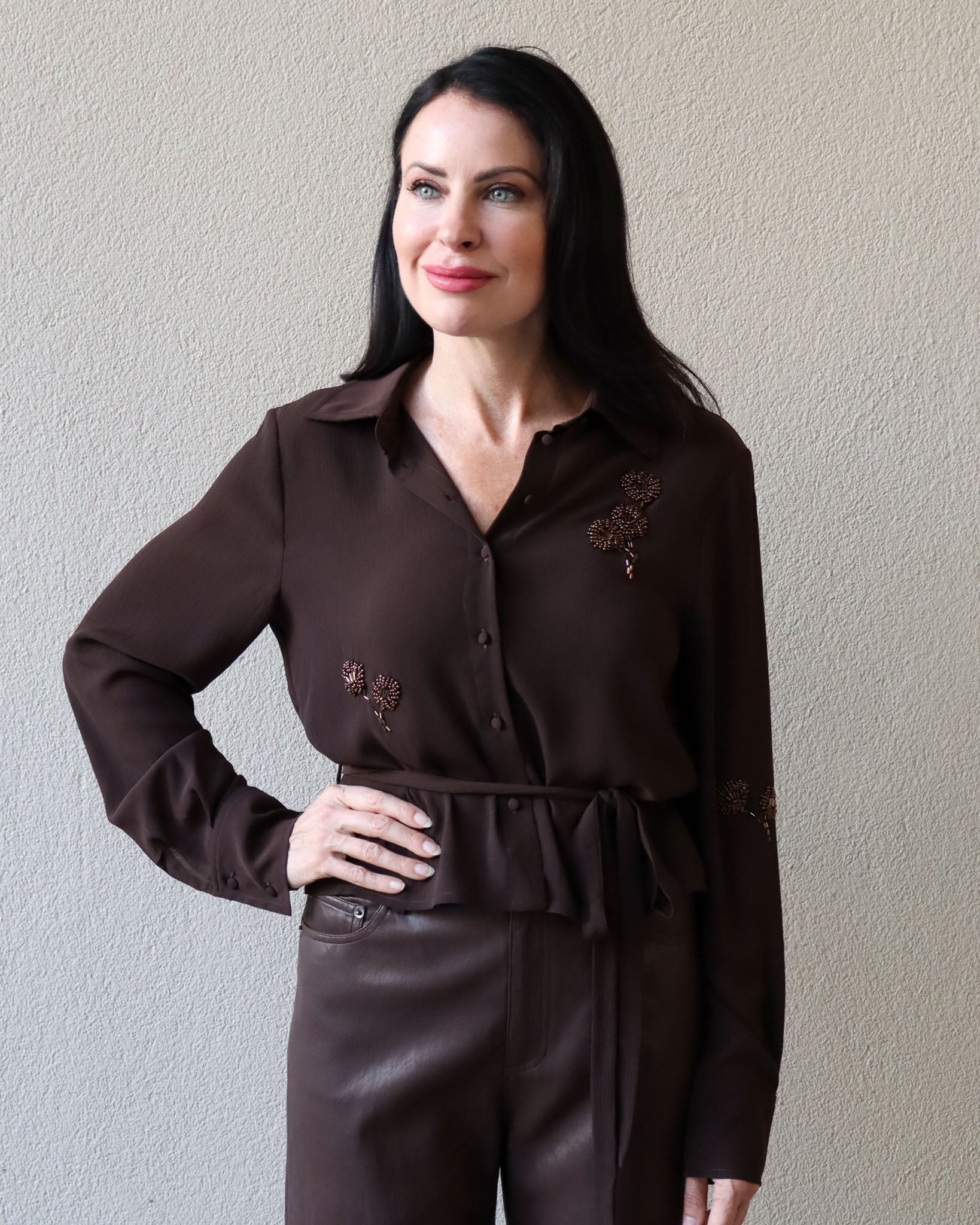 Elevate your style with the Zayn Beaded Blouse from Lucy Paris. Featuring a rich fabric and a playful tie waist, this slightly sheer top adds a flirty twist to your look. Perfect for layering or wearing solo, it brings effortless chic to any outfit.
